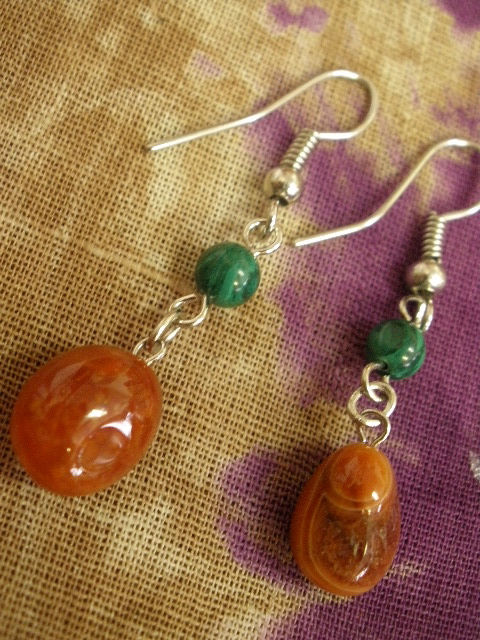 マラカイトとカーネリアンピアス
