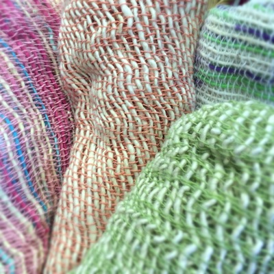 ざっくり編んであるコットンマフラー。