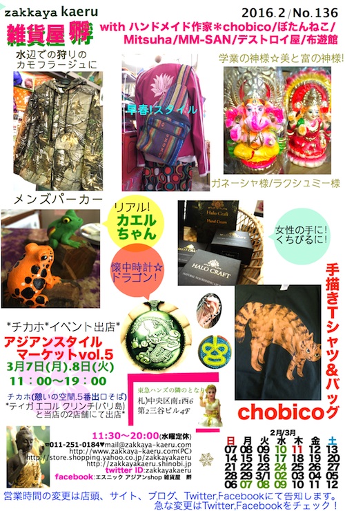 狸小路3丁目の裏、南3条通りに面している雑居ビル(アルファ南3条ビル)の5F移転しました! 雑貨屋 孵(かえる)のブログです。 新商品や日々の出来事など、ほぼ毎日更新中です。 暇つぶしにどうぞ(^◇^) 第2.4火+水曜定休*