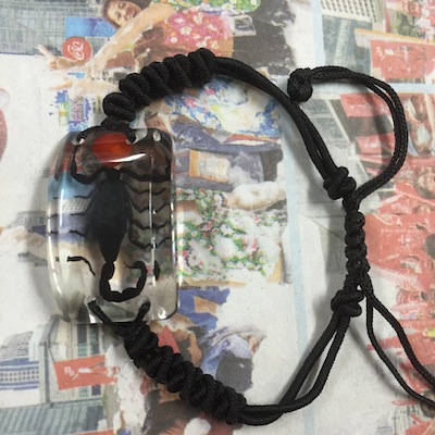 こちらはラピスラズリが多数埋め込まれた雫型風のトップ。