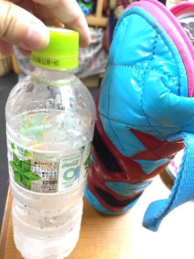 今日も、ペットボトル入りの水を一晩凍らせて、