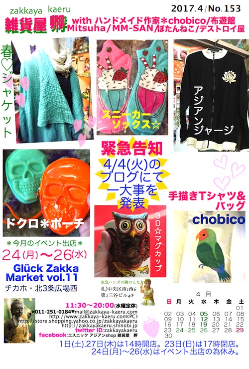 3/31(金) イベント出店に伴い店舗・ヤフーショッピングは休み