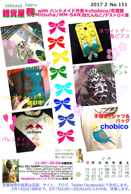 狸小路3丁目の裏、南3条通りに面している雑居ビル(アルファ南3条ビル)の5F移転しました! 雑貨屋 孵(かえる)のブログです。 新商品や日々の出来事など、ほぼ毎日更新中です。 暇つぶしにどうぞ(^◇^) 第2.4火+水曜定休*