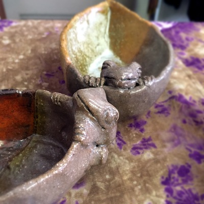 趣味で蛙モノを多数作っている方で、その延長で当店へ作品を寄贈してくださいまして。
